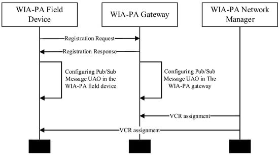 The WIA-PA/OPC UA joint pub/sub configuration process can be divided into two parts: the pub/sub registration phase and the VCR establishment phase. Its time sequence flowchart is shown in Figure 10.