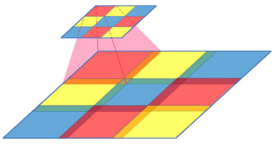 Following the idea proposed by CNN visualization [31], we obtained the coordinates for feature extraction. We take the forward calculation method and perform a convolution operation for . The resulting process is illustrated using Equation (9):