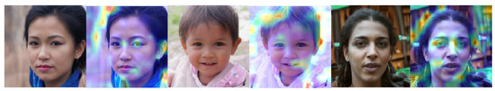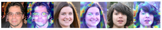 Hu et al. [27] proposed using the attention map to eliminate the influence of the low-impact part when using the attention map for fine-grained classification in object detection. As shown in Figure 6, with the information obtained by the attention map, we can obtain the concentrated area of the face to better discriminate between true and false information. We then can focus on this part of the area for training. As we have located the face and eliminated almost all the background information, we only select 80% of the parts for interception. After processing, most low-impact information on the face is eliminated. Then, the corresponding features are processed in the next step.