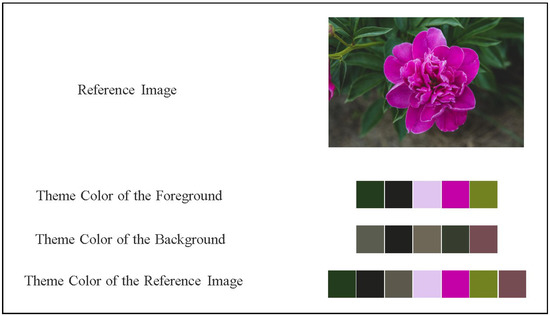 where the scalar parameters meet , and are the color values of the palette. If you want to change the colors of five palettes at the same time, compatibility and coordination between the five colors is very important, and the color-enhanced image cannot appear with color penetration or color inconsistency. Therefore, after the color conversion equation is determined, all pixels in the input image are updated next: , is the pixel of the input images, is the pixel after the color update, is the five-color color combination in the selected database, and C is the color in the image palette.
