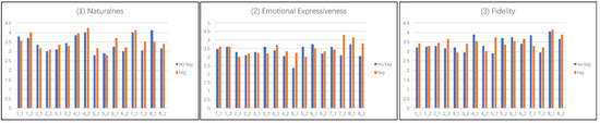 The second user study. Each participant was asked to answer questions in three indicators: naturalness, emotional expressiveness, and fidelity.