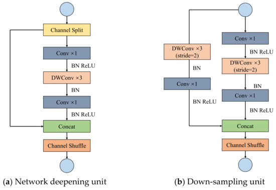 Two types of block unit for the ShuffleNetv2 are elaborated in Figure 5.