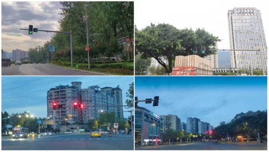 Meanwhile, 2872 traffic lights images have also been collected in Chongqing, China, in total containing 7862 instances of 12 categories consisting of red, green, red LED light digitals within five and green LED light digitals within five. The self-made dataset involving a rich environment is possessed of superior quality, with 1247 LED light digitals, which are more suitable for actual autonomous driving conditions. It provides long-term meaning for subsequent relevant researches. Some of the images are revealed in Figure 8.