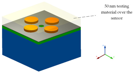 Unit cell design of the sensor with a 50 nm layer of test material deposited on the top.
