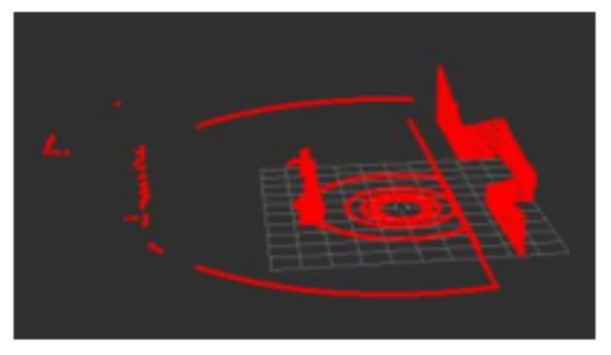 In the process of lidar point cloud data acquisition, due to factors such as low equipment accuracy and a complex environment, there will be noise in the collected data, as shown in Figure 2. Therefore, we chose direct, statistical [8], and conditional filtering [9] to process noise. In addition, the amount of directly acquired point cloud data is large. In order to speed up the subsequent mapping, positioning, and other operations, voxel filtering [10] is also used to realize down sampling.