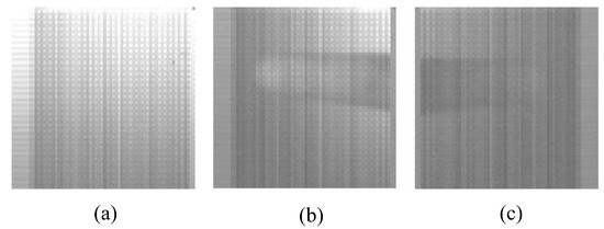 Sample monochromatic images captured from the custom CMOS image sensor are shown in Figure 4. The images are raw images from the sensor without any post-processing. The first image (Figure 4a) is a sample image captured from the camera without any test object. The differential intensity due to the presence of a 0, 45, or 90 wire grid polarizer on the pixels is visible. Figure 4b shows a captured image of a fingertip when the light source incident on the fingertip was unpolarized. Figure 4c shows the image captured when the incident light was 45 polarized using an external polarizer. The variations in the measured pixel intensities with varying transmission axes allowed phase measurement of the incoming reflected light from the fingertip.