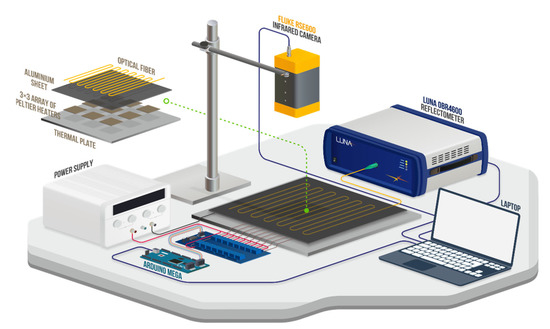 - Soller, B.J.; Gifford, D.K.; Wolfe, M.S.; Froggatt, M.E.; Yu, M.H.; Wysocki, P.F. Measurement of Localized Heating in Fiber Optic Components with Millimeter Spatial Resolution. In Proceedings of the 2006 Optical Fiber Communication Conference and the National Fiber Optic Engineers Conference, Anaheim, CA, USA, 5–10 March 2006; p. OFN3. [Google Scholar]