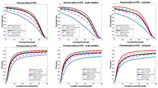 Figure 10. OPE comparison of our tracker and 6 other excellent trackers in terms of precision and success rate on OTB-2015.