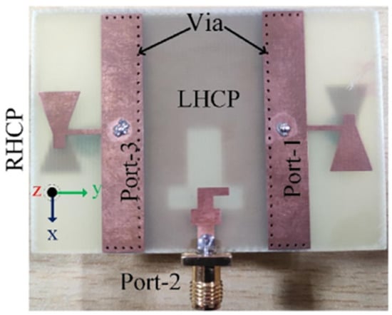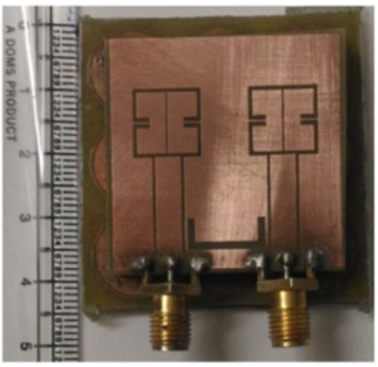 In [49], a trident-shaped dual-port MIMO antenna with dimensions 62 × 25.6 × 1.524 mm3 is shown in Figure 15.