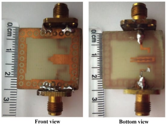 The fabricated prototype of 4 × 4 MIMO antenna [21]. (Left side: ground plane and right side: microstrip line).