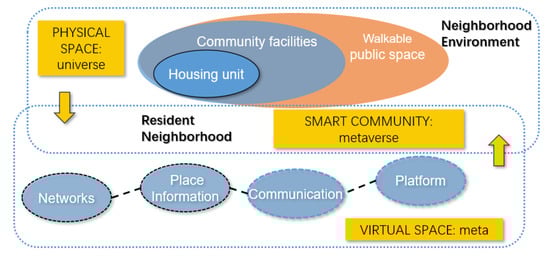 The shift to the media and virtual societies has also influenced how people create communities and communicate. Young people today find their excitement in placeless communities. Historically, neighborhoods were places where residents’ socialization and sense of community were high. However, localized interactions with neighbors or a geographical community are no longer a prerequisite for building a sense of community. The emergence of virtual communities has also brought negative consequences, such as the cutting off of communication with neighbors in physical spaces and a lack of use of community facilities in the local community. Since proximity and locality can still benefit residents and neighbors, the smart community proposed in this study is distinguished from the general virtual community in that it is a smart community based on proximity and locality. Residents can share a variety of information about neighbors, complexes, community facilities, and public facilities through the platform and can engage in various activities in community facilities with neighbors they meet through the platform.