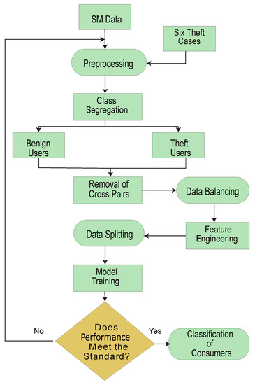 Power generation, transmission and distribution collectively build a power system infrastructure. The power generation phase generates electricity at a high voltage level. The generated electricity is supplied to the end user through transmission lines. The end user is the consumer who consumes the supplied electricity via distribution network [1]. Smart Meters (SMs) are installed on the end users’ side by Utility Providers (UPs) in order to monitor the consumed energy [2]. There are two types of losses, Technical Losses (TLs) and Non-Technical Losses (NTLs) [3]. TLs are the network-associated losses, which are confined to the design and material of the infrastructure, while NTLs are the losses which occur due to the interruption of the end consumers to obtain financial benefits by under-reporting the consumed energy. The interruption of the end consumer is basically a malicious activity, which is adopted by the fraudulent consumers. The connected fraudulent consumers tend to tamper the net metering of their consumed energy by adopting various data tampering techniques, such as meter tampering using shunt devices, double tapping of the lines and electronic faults [4]. The effects of such malicious activities over-burden the UPs with huge financial losses, which disrupt the smooth energy flow and demand curve. For instance, the study conducted in [5] reports that the monitored losses have been increased from 11 percent to 16 percent during the last two decades (1980–2000). The increased losses clearly highlight that revenue losses due to NTLs are a conspicuous issue and need special attention. NTLs vary from country to country. The literature in [6] reports that about 20% of the total revenue loss in Indian electricity network is due to the aforementioned malicious activities. Similarly, the United States is also facing a revenue loss of USD 6 billion annually [7,8]. Worldwide, revenue losses of about USD 96 billion are reported due to such malicious activities [9].