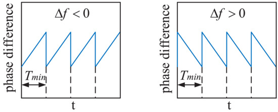 Figure 2 that, ideally, the phase difference variation law of two signals with a fixed-frequency difference varies with