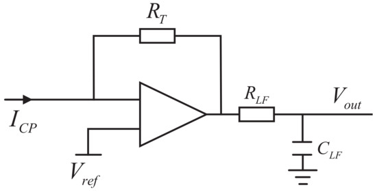 Thirdly, , are sent to the PFD for frequency and phase detection. Together with the CP, the phase and frequency error between and is transformed into the current information, which is proportional to the phase and frequency error. Then, through the active LF, the current-to-voltage stage is accomplished, and the voltage signal is sampled by ADC.