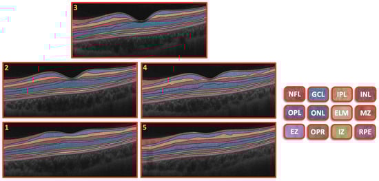 An example of the segmentation of the OCT layers is shown in Figure 2. More details about the 3D segmentation approach can be found in [].