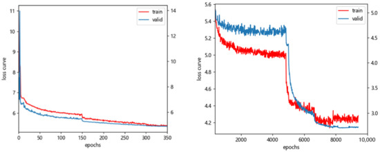 All experiments with this technique were conducted using an Nvidia RTX3070 (12 G graphics memory) graphics card with a Windows 10 operating system, 32 G.B. of RAM, the CUDA11.6 accelerated computing library, and the Pytorch framework. The batch size was set to 22. To prevent the instability of the model gradient during the initial training, a stochastic gradient optimizer (SGD) with momentum was used for 350 rounds of pre-warm-up training, with the initialized learning rate set to 8 × 10−6, the momentum set to 0.9, and the weight decay rate set to 0.0005. After that, using the Adam optimizer with an initialized learning rate of 0.01 to retrain the model. After 2500 epochs, the learning rate automatically lowers to 0.1 times the initial rate. The smoothing constants are, respectively, 0.90 and 0.999, and the weight decay rate is 0.0005. Fifteen thousand epochs make up the entire number of iteration epochs.