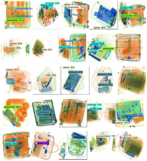 - Wei, Y.; Tao, R.; Wu, Z.; Ma, Y.; Zhang, L.; Liu, X. Occluded prohibited items detection: An x-ray security inspection benchmark and de-occlusion attention module. In Proceedings of the 28th ACM International Conference on Multimedia, Seattle, WA, USA, 12–16 October 2020; pp. 138–146. [Google Scholar]