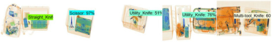 - Galvez, R.; Dadios, E.; Bandala, A.; Vicerra, R.R.P. Threat object classification in X-ray images using transfer learning. In Proceedings of the IEEE 10th International Conference on Humanoid, Nanotechnology, Information Technology, Communication and Control, Environment and Management (HNICEM), Baguio City, Philippines, 29 November–2 December 2018; pp. 1–5. [Google Scholar]