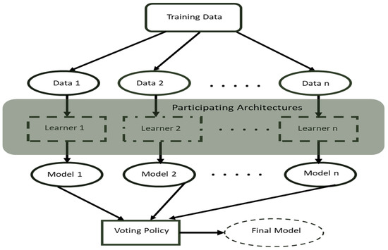 One such intelligent method is the artificial deep learning method that has recently drawn the significant interest of researchers. Deep learning [5] has been impactful in different research fields involving object detection [6], object segmentation [7], image classification [8,9], and speech recognition [10]. Deep learning provides more efficient and autonomous feature extraction than the manual feature extraction method and thus serves as a substitute in recent related scientific works. Also, deep ensemble learning, an advanced deep learning method, has contributed immensely to the enhancement of the deep learning-based high-level image frames feature computations and learning [11,12,13]. Therefore, in this work, an improved optimal deep learning method that deploys a voting policy strategy (see Figure 1), derived using three key main viable deep learning attributes such as architecture optimality, performance efficiency, and well accuracy, is introduced.