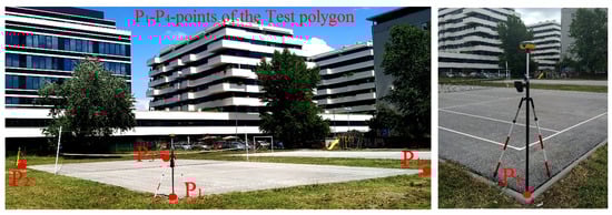 The Test polygon (Figure 2) is situated in an open area where there is no possibility of GNSS signal reflection. GNSS system (Figure 3) and the applied commercial software do not have the ability to change data on atmospheric conditions, and therefore do not have the ability to calculate the impact of the ionosphere and troposphere while performing GNSS RTK measurements. It should be noted that most of the commercial software delivered by manufacturers of GNSS devices for geodetic purposes does not have this ability. The parameters of the atmosphere should be taken into account and administered by GNSS correction distributors, i.e., owner of the GNSS Network (AGROS; “Vekom-Net”; “Gen-tooARS”). However, since all GNSS RTK measurements (in all three GNSS Networks) at the Test polygon were performed in a short period of time (total measurements lasted app. 90 min), it can be concluded that the external influences were the same for all measurements and that they affected the measurement results in the same way.