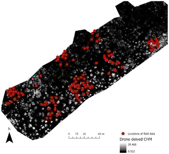 Location of field-measured tree height data points.