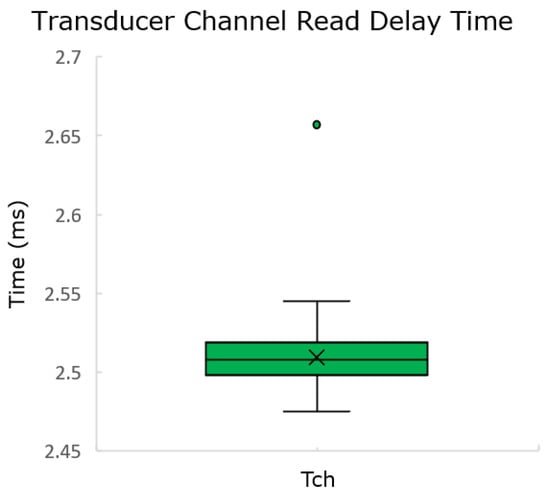 100 measures were taken, from which a boxplot was graphed, which can be seen in Figure 15b. The average value of a transducer channel-TEDS request was measured at 205.6 ms, for a transducer channel-TEDS of 114 bytes.