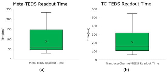 Time for TEDS readout (accounting for communication). (a) Meta-TEDS. (b) Transducer Channel-TEDS.