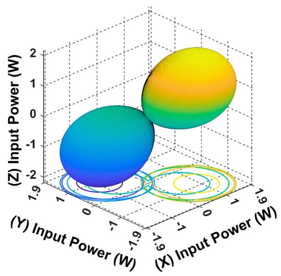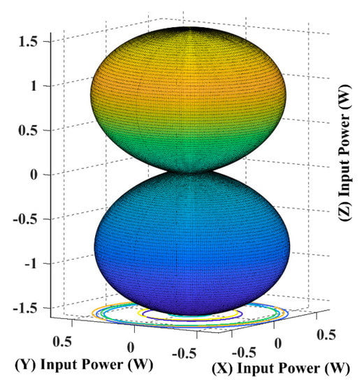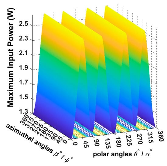 2.3. The 3D WPT System Input Power in Terms of the Receiver Angles