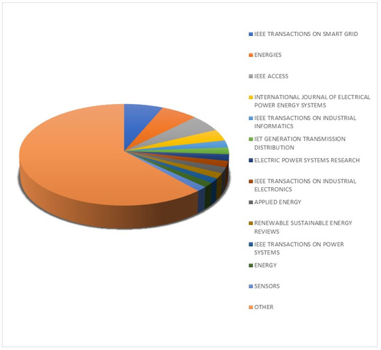 The digital applications used in the “smart grids”, an intertwined term used to describe the digital distribution network, i.e., all distribution components including the switchgear, as investigated in [41] in 2019, highlight and divide the research conducted in the field of digital applications in condition monitoring and predictive maintenance in distribution networks and its included subcomponents. The results are presented in Figure 3.