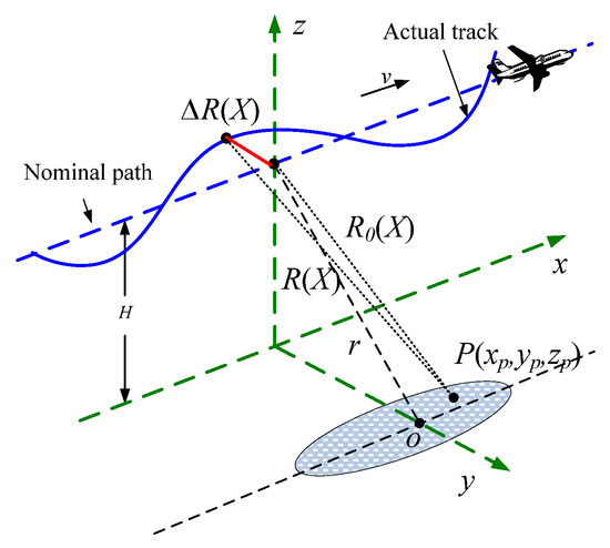 where represents the vertical distance from o to radar. Under the far-field assumption, the motion errors of the platform can be expressed as: