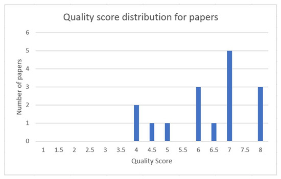 Figure 6 shows the quality score distribution of the papers. The papers that scored 4 or more, which is the threshold value for inclusion in the paper, are part of the study. In this study, all identified papers were included as those are of high quality.