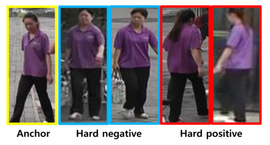 Based on this idea, we can transform the conventional triplet loss Equation (11) into a hard triplet loss as: