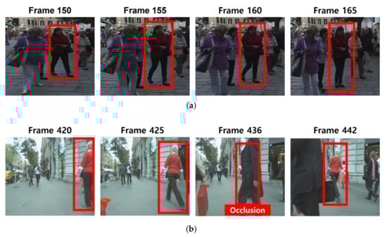 Under tracking-by-detection paradigm, online tracking methods perform tracking with detections up to the current frame [9,10,11,12,13,14,15]. Therefore, online methods can be applied for real-time systems (e.g., ADAS, autonomous driving). However, association failures by occlusions occur more easily compared to batch methods [2,6,28,29]. Therefore, many methods focus on improving the data associations by learning affinity models [30]. To this end, appearance, motion, and shape models are exploited as object affinity models [4,9,23,31,32]. Depending on sharing an affinity model or not, we can categorize multi-object tracking into object-specific methods and global object methods. We provide the details of each method in Section 2.1.1 and Section 2.1.2, respectively.