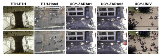 - Alahi, A.; Goel, K.; Ramanathan, V.; Robicquet, A.; Fei-Fei, L.; Savarese, S. Social lstm: Human trajectory prediction in crowded spaces. In Proceedings of the CVPR, Las Vegas, NV, USA, 26 June–1 July 2016; pp. 961–971. [Google Scholar]
