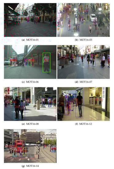 - Milan, A.; Leal-Taixé, L.; Reid, I.; Roth, S.; Schindler, K. MOT16: A benchmark for multi-object tracking. arXiv 2016, arXiv:1603.00831. [Google Scholar]
