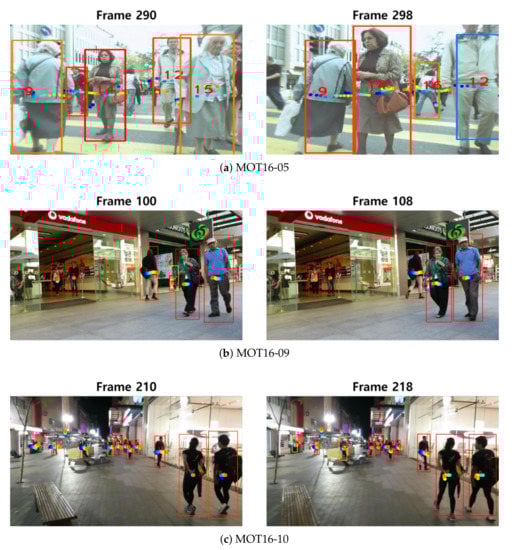 - Recent multi-object tracking methods tend to improve the accuracy by applying well-designed detection methods. For example, Refs. [2,28,61] exploit the Faster R-CNN head [62] which is one of popular detection methods. By using the detection method, they refine public detections by discarding false detections or correcting misaligned detections before feeding it to multi-object tracking network. Moreover, Ref. [63] attaches an appearance embedding feature head into a detector [64] in order to identify the tracked object, as well as more accurate object localizations compared to original public detections. They can improve the MOT accuracy but the overall tracking speed degrades in return because of the computational cost for detection. On the other hand, the confidence-based object association algorithm exploits public detections without any manipulation and additional inputs by detection heads. To improve the accuracy, this method aims to enhance the association quality which is key for robust multi-object tracking regardless of the quality of object location by detection methods.