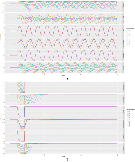 (A) ACC controllers Analysis. (B) Sinusoidal acceleration analysis.