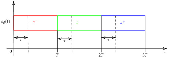 In real conditions, the receiver continuously collects chunks of M samples that are not necessarily aligned with the receiver, i.e., the sampling times are different between the transmitter and the receiver. This produces a temporal window shift up to a symbol period T, as depicted in Figure 5. This effect, referred to as the sampling time offset (STO), introduces inter-symbol interference (ISI) if the previous symbol is different from the current symbol, i.e., and in the figure. The higher the value of , the greater the ISI, with maximum signal deformation when .