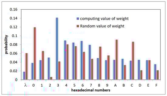 WRID-OPES is designed for the character string data. Moreover, the definition of distance between character strings is different from the distance between numerical data; therefore, OPRIT is the vulnerable step for suffering from the frequency-based attacks. The attackers can deduct the weight by counting the distribution frequency of the encrypted sub-intervals in the definition domain. Moreover, in the previous section, we proved that the expectation of division ratio was similar to the given weight. Therefore, we can conclude that the frequency distribution of long integer encrypted value is similar to the provided distribution. To verify this assumption, we conducted the test by using 1 000 random character string whose length is 100. We used the counted weight of numerical characters and the random characters as the input of WRID. Then obtained the distribution results as shown in Figure 6.
