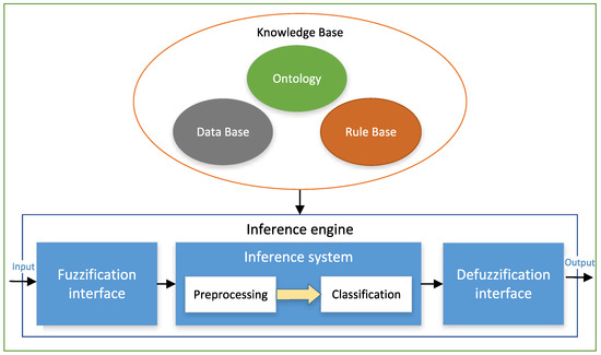 The proposed Fuzzy System for the driver behavior classification is based on the Mamdani approach [35] and has been developed in Java. Figure 1 shows the system’s architecture, which is composed of two main parts: the inference engine and the knowledge base. The different parts of the inference engine and the knowledge base will be explained below.