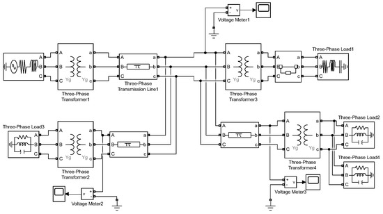 Simulink system for generating voltage sag disturbance induced by line fault.