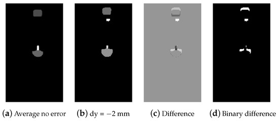 An example is shown in Figure 11. For each of the obtained difference segments, we then calculate its center and pixel area using Equations (3) and (7), respectively.