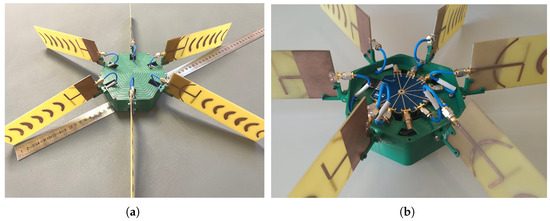 Multi-sector BS: (a) complete antenna prototype and (b) open view of the SKY13418-485LF RF switch.