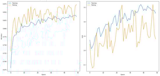 The main problem with image datasets is overfitting. Augmentation was applied to reduce overfitting and artificially enlarge the dataset [41]. Data augmentation is a technique used to increase the volume of data, thereby improving the generalization of the training model and reducing overfitting. In this study, we performed different augmentation techniques, such as 5° image rotations, range shearing, range zooming, and horizontal flips.