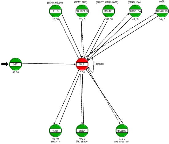 In the proc module, we use the finite state mechanism to build the network protocol and algorithm, as shown in the Figure 8. The main functions of proc module include initialization, packet sending and receiving processing, signaling generation and broadcasting, and routing algorithm implementation.
