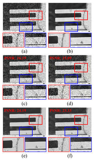 Although the proposed simple scheme is powerful, there are practical limitations that should be considered. First, noise extraction should be carefully and manually performed to include all noise patches so as to follow the characteristics of the source domain images, as they are critically related to the future performance of the visual inspection task. Second, although this scheme is powerful at high noise levels, restoring even more severely corrupted noisy images with indistinguishable noise and details was nearly impossible, as meaningful noise patches could not be extracted.