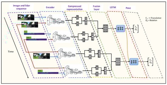 Deep-learning-based algorithms have become common practice for image classification due to the availability of large-scale datasets. Applications such as odometry require a high volume of data suitable for learning geometric features representing the surrounding environments. Unlike traditional methods, deep learning approaches do not require manual data calibration. Although current deep learning approaches outperform traditional methods, their architectural designs are not good enough to grasp all the useful underlining features of the input data. Moreover, it is impossible to explain the underline feature extraction process between neurons as the machine learning process is thought as a black box problem. To overcome this limitation, we propose a new design of an end-to-end deep learning architecture, as shown in Figure 4, that can better extract features representing image and LiDAR data for odometer applications. The architecture contains two parts: an encoder that includes compressed representation node and a sequential modelling with RNN. The compressed representation node space of this model can also be used to gain insight into the deep learning network.