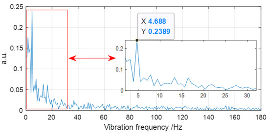 where represents a certain position, and U and V are the starting point and ending point, respectively. Then, to obtain the vibration spectrum, an array is obtained, which is the time domain data from continuous measurements and data averaging with a certain position range, as shown in Equation (5). Then, by FFT, the vibration spectrum can be extracted by Equation (6):