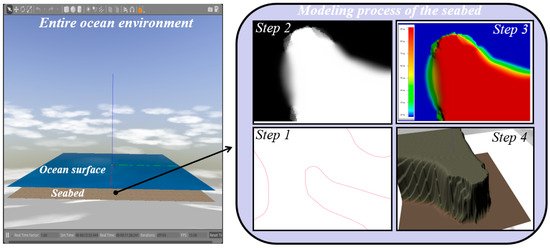 Visualization of the entire ocean environment and the modeling process of the seabed.