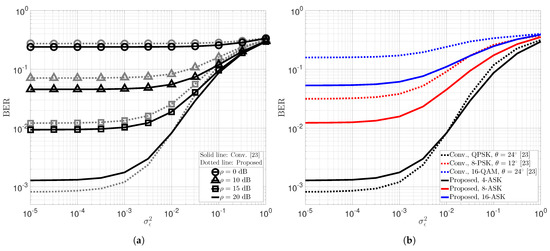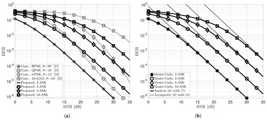 - Cho, K.; Yoon, D. On the general BER expression of one- and two-dimensional amplitude modulations. IEEE Trans. Commun. 2002, 50, 1074–1080. [Google Scholar] [CrossRef]